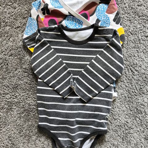 Myydään 3 bodeja 62-68cm. Jääkarhu body 62cm. Oranssit bodyt 62/68cm