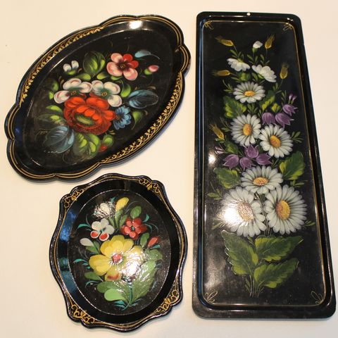 Koristeelliset metallitarjottimet ja kulho