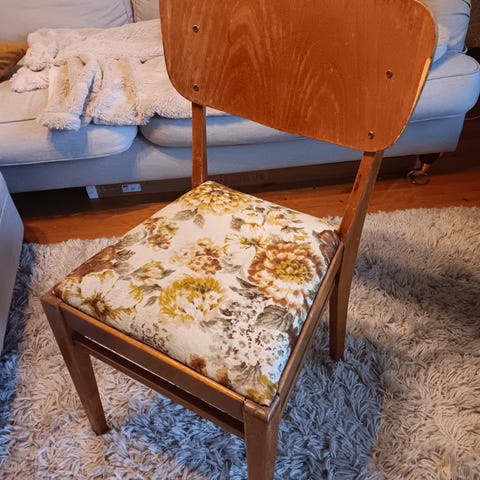 Kohtalaisen siisti, mutta toki ajan kuluessa käytön jälkiä saanut vanha tuoli. Vain nouto.