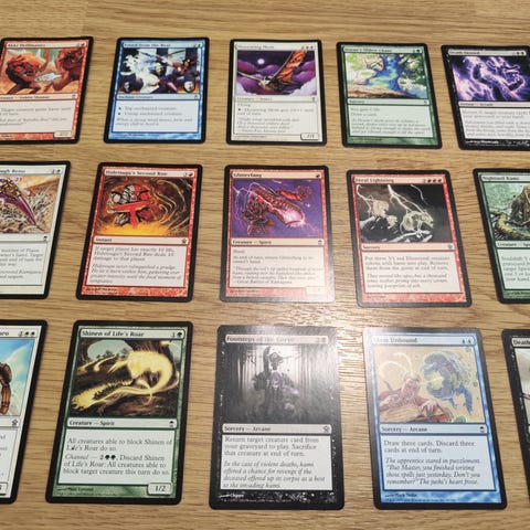 Magic: The Gathering korttipakka. Kunto ok, mutta korttien reunoissa on vaihtelevasti pientä kulumaa. Laitan mielelläni tarkempia kuvia kunnosta jos olet kiinnostunut tietyistä korteista.