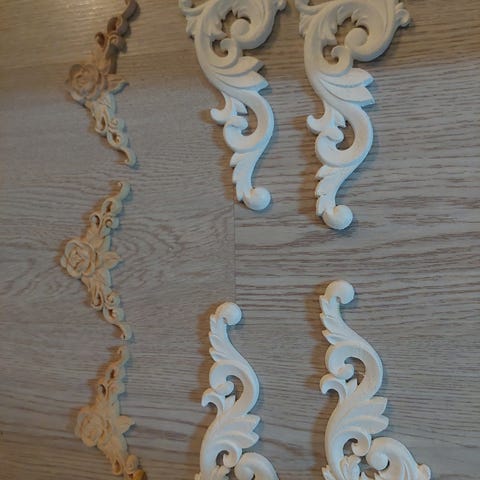 maalaisromanttinen, tuunaus, rokokoo koriste, rokokoo koristeet, puukoriste, puinen koriste, sabluuna, puukoristeet