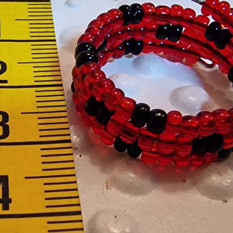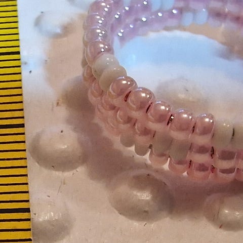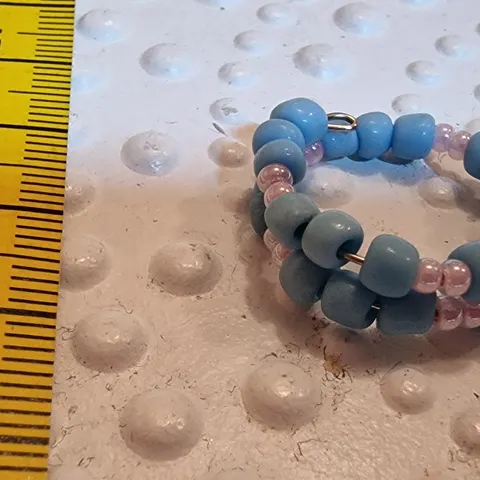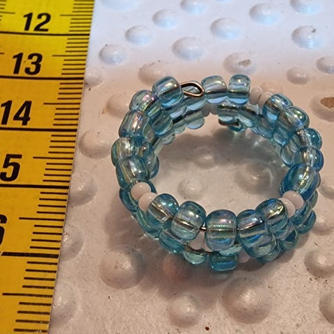 Sormus käsityönä tehty, joustava vieterirengas. Mittanauha antamassa osviittaa pituudesta. Jos ostat useampia koruja kannattaa olla yhteydessä, että saataisiin samoilla postikuluilla.