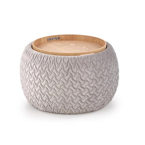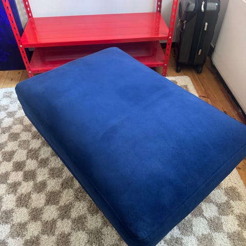 Boucle-kankainen pehmeä penkki tai rahi. Väri luonnonvaalea, tai vaalea beige.