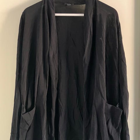 Myydään vähän käytetty musta neuletakki villaa. Ohutta villaa ja siisti, joten toimii monissa eri tilaisuuksissa ja täydellinen mm. syksyyn! Edessä 5 nappia ja v-kaula-aukko. Sileää neulosta, ei kutita.