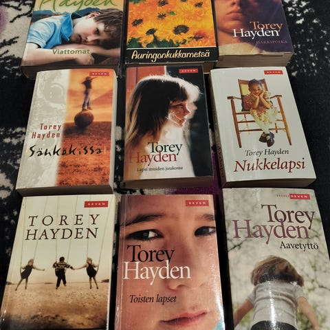 Myydään Torey Haydenin kuuden kirjan sarja, joka sisältää seuraavat teokset: Nukkelapsi, Tiikerin lapsi, Hiljaisuuden lapset, Lapsi muiden joukossa, Aavetyttö ja Häkkipoika. Kirjat ovat suomenkielisiä ja sisältävät erilaisia tarinoita ja aiheita. Sarja soveltuu lukijoille, jotka ovat kiinnostuneita kaunokirjallisuudesta ja henkilökohtaisista kertomuksista.