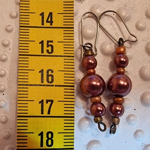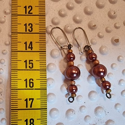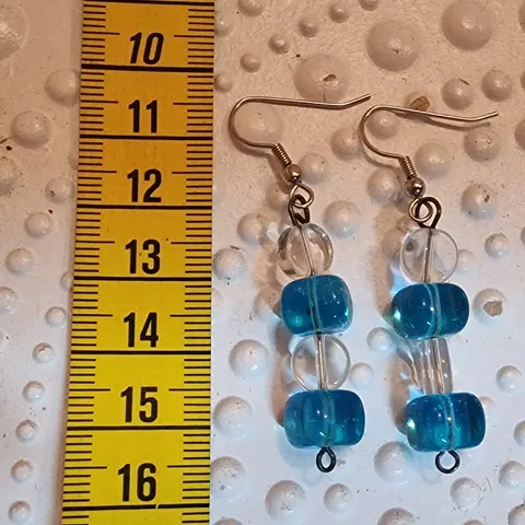 Korvakorut Käsityönä tehty, Mittanauha antamassa osviittaa pituudesta. Jos ostat useampia koruja kannattaa olla yhteydessä, että saataisiin samoilla postikuluilla.