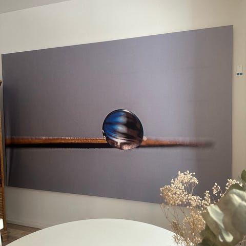 Iso akustiikkataulu / akustiikkalevy, mitat n 180x121. Kankaassa koivuprintti.
