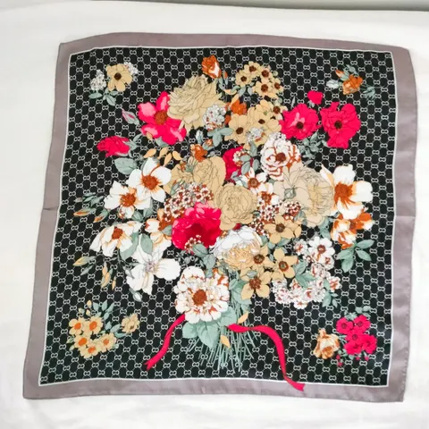 Kukallinen huivi musta-puna-harmaa-valkoinen uuden ver. koko 70x70