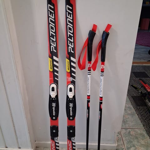 Peltonen sukset 100cm ja sauvat n.70cm. Salomon sns siteet. Nouto Lahden patomäestä.