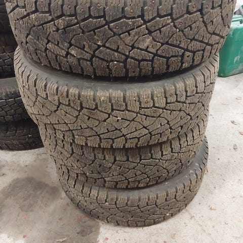 Myydään kuvan nastarenkaat peltivanteilla takavetohiaceen.