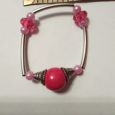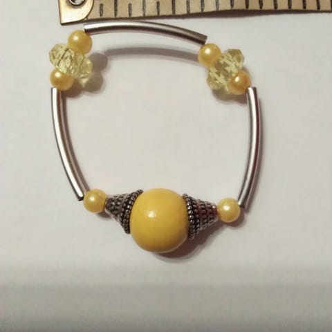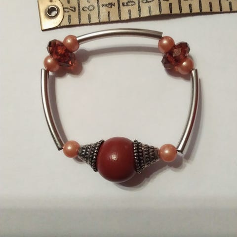 Rannekoru akryyli ja puuhelmi, venyy 10-11cm halkaisijaltaan.