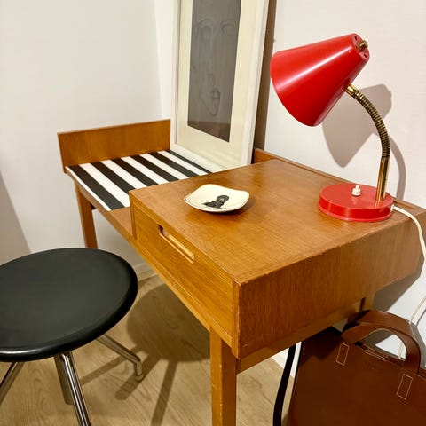 Hakusanoja: vintage työpöytä sivupöytä ompelupöytä kauneuspöytä meikkipöytä teakpöytä kirjoituspöytä kampauspöytä tiikki tiikkiviilu
