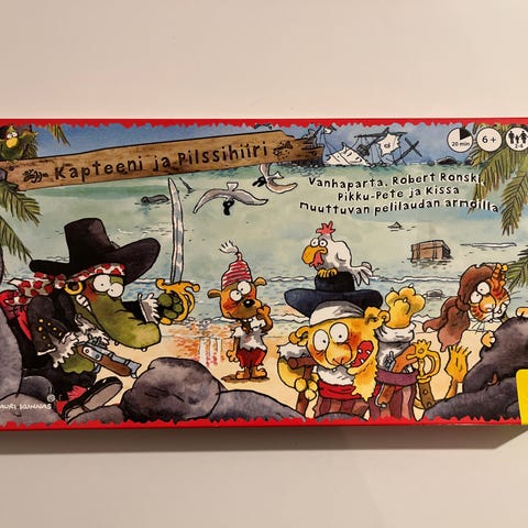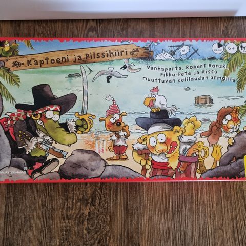 Mauri Kunnaksen kuvittamassa pelissä merirosvokapteenit ja laivapojat ottavat toisistaan mittaa. Tutut hahmot Vanhaparta, Robert Ronski, Pikku-Pete ja Kissa ovat muuttuvan pelilaudan armoilla.
