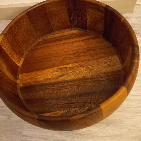 Casa Stockmann merkkinen puinen kulho. Mitat ja kunto näkyy kuvissa. Kyljessä oleva naarmu saa varmaan jollain pintakäsittelyllä poistettua.