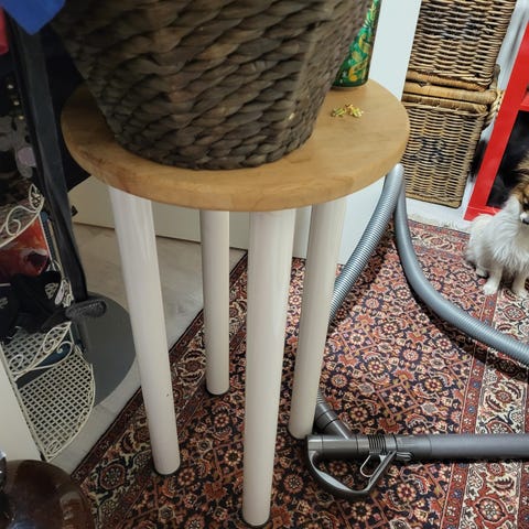 Helposti siirreltävä pieni metallinen apupöytä esimerkiksi nojatuolin viereen. Hyvässä kunnossa, hyvin kevyttä pintanaarmua. Vähällä käytöllä ollut.