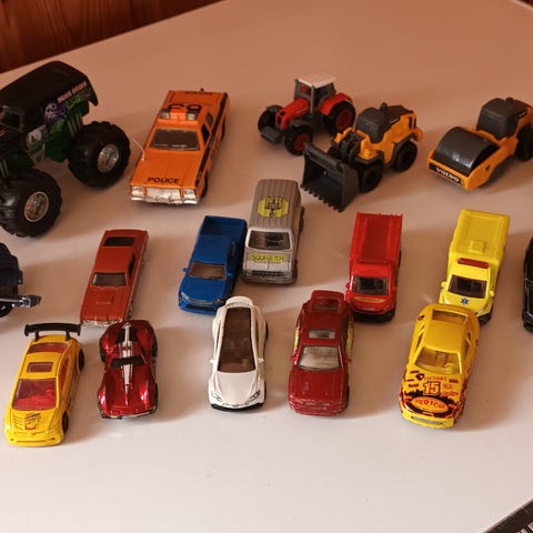 Hyväkuntoiset ja siistit lasten lelut. Majorette rekka, Majorette betoniauto, ambulanssi, Claas traktori, Mattel Matchbox Flying Dagger hävittäjä ja sotilaat. Yhteensä 36 kpl sarja. Haku Joensuun Karsikko tai postitus.
