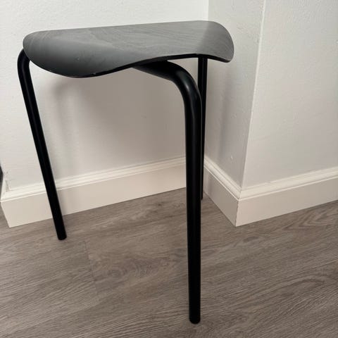 Artek Ilmari Tapiovaara jakkara, metallirunko, vaneri-istuinosa, musta