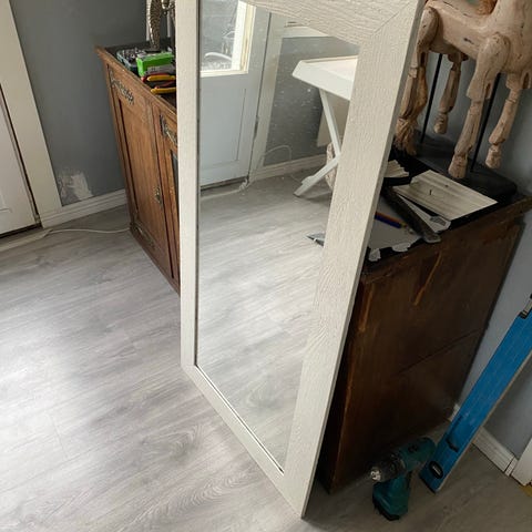 Rouhea, ruskea, paksureunainen peili. Mitat: korkeus 78 cm, leveys 68 cm, kehyksen paksuus 9 cm. Vain nouto.