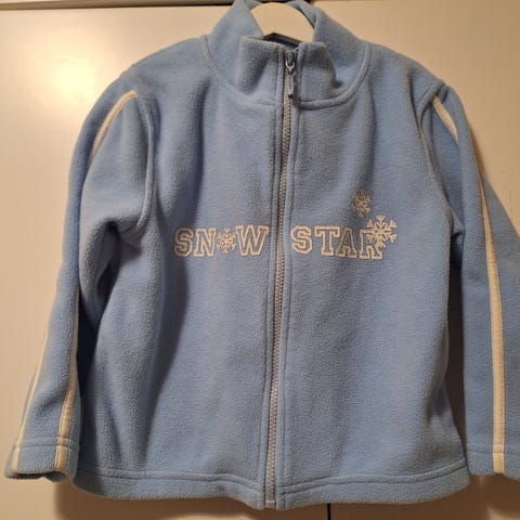 Tumman sininen fleece takki. Kuvassa aurinko vaalentaa sävyä.