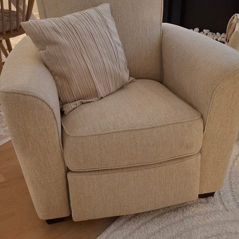 Recliner chair in brown velvet fabric. English made by Parker Knoll. Very comfortable. Only one chair is available.