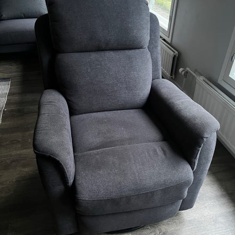 Hyvä kuntoinen, pehmeä, vasta pesty tekstiilipesurilla. Mekanismi kerran jouduttu itse korjaamaan ja on vähän renkkana mutta toimii edelleen. Pään takaa yksi tuki puu poikki muttei vaikuta käyttöön millään tavalla. Eikä se näy ulos päin.