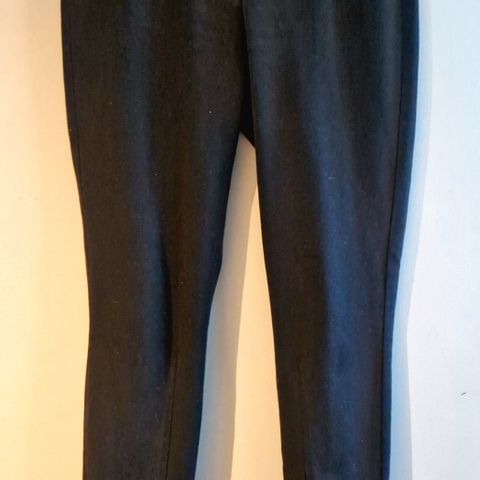 Laadukkaat uudet housut. Väri tummansininen, tietyssä valossa näyttävät mustilta. Vyötärö 38 cm. Haara-lahje 64 cm. Lahkeen leveys 19 cm.