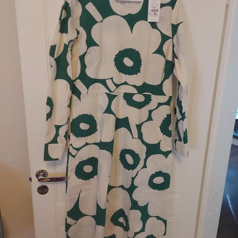 Käytettynä ostettu hyväkuntoinen hame. Vyötärö -helma 88 cm. Vihreä pohja vaaleanpunaiset kukat joissa myös mustaa ja beigeä.