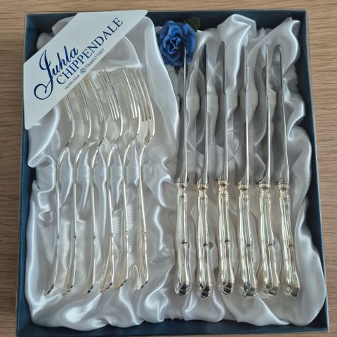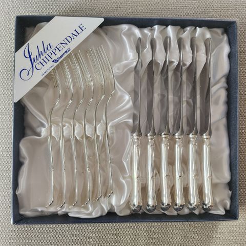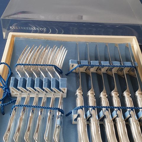 Setti sisältää 6kpl ruokaveitsiä ja 6kpl haarukoita. Aterimet eivät ole olleet koskaan käytössä.