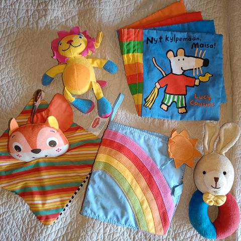 Vauvan lelusetti mm. interaktiivinen lamaze lelu ja soittorasia sekä Brio leluja