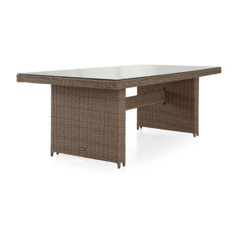 Tyylikäs ja käytännöllinen terassipöytä 140 cm halkaisijalla. Runko polyrottinkia ja pöytälevy lasia. Marcus-pöytä on valmistettu säänkestävistä materiaaleista, jotka eivät vaadi juuri lainkaan huoltoa.