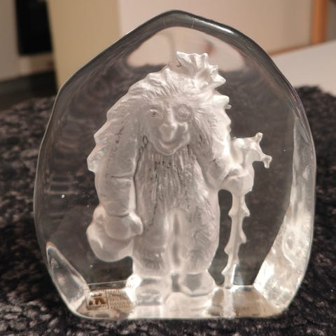 Mats Jonasson kristallikissaveistos Ruotsi 5 cm korkeus. 1970v.