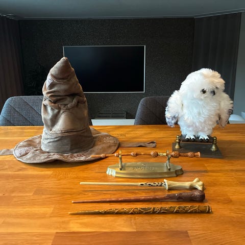 Harry Potter Tylypahkan suuren salin leikkisetti. Settiin kuuluu hahmoja, lisävarusteet ja liikutettavia osia. Pattereilla toimivat vilkkuvalot.