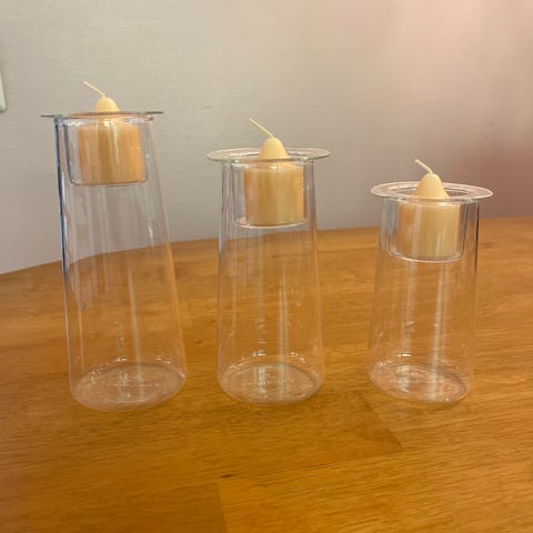Arianan puutarhan keijut, kolme yhteishintaan 50€. Posliinisomisteisiin sopivat tuikkivat/votiivit tai kelluvat somisteen mukaisesti. Huurretut votiivilasit mukana.