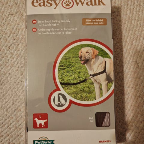 Myynnissä PetSafe Easy Walk -merkkiset etukiinnitteiset valjaat. Koko M (medium), sopii keskikokoisille koirille. Näissä valjaissa talutushihna kiinnitetään rinnan eteen, jolloin vetäminen vähenee tehokkaasti ja ohjaus helpottuu.
