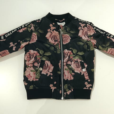 Kappahlin nätti vaaleanpunainen/kukkakuvioinen lasten kevyttoppatakki, koko 92. Irrotettava huppu. Hyvässä kunnossa, mutta lapsen nimi nimelle kuuluvassa lapussa. Savuton, eläimetön talous.