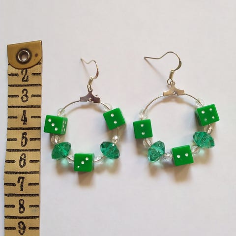 Korvakorut , akryyli ja strassi, hopeoidut helmet