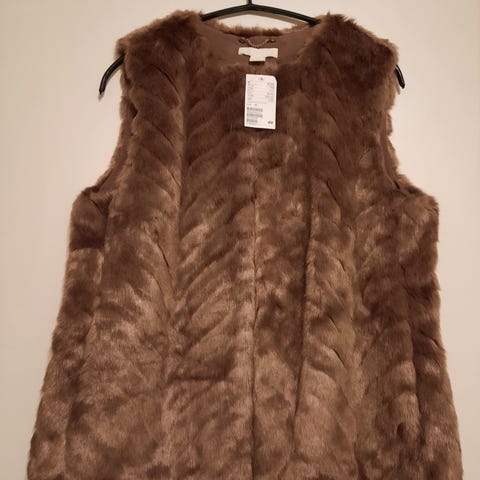Uudenveroinen, käyttämätön Global Sport keinoturkisliivi. Pintamateriaali aidon tuntuista mokkanahkaa, mutta on keinomateriaalia, sisäpuoli pehmeää karvaa.