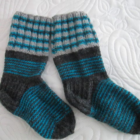 Itsetehdyt villasukat . Hyvä käytetty kunto. Pohjan pituus 15cm ei venytetty.