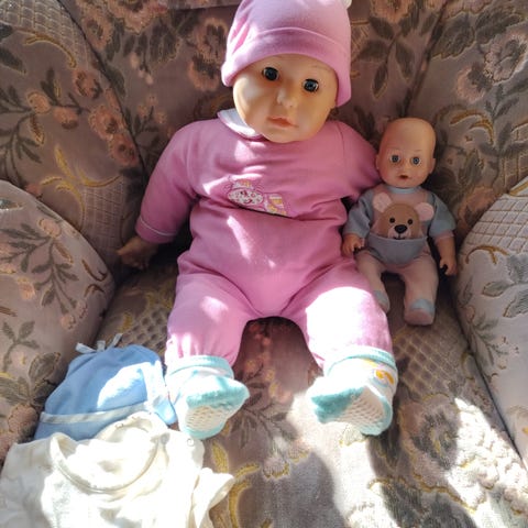 Paljon leikkittyjä takkutukkaisia nukkeja seuraaville leikkijöille.