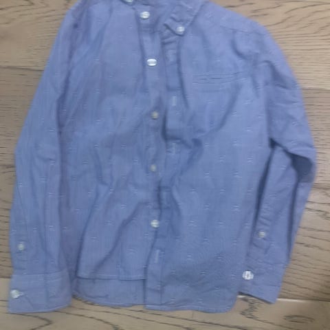 Kaunis paita kevyttä sifonkikangasta. Pehmeä vuorikangas. Väri lähimpänä totuutta ekassa kuvassa. Kokomerkintä 134-140, mutta paljon pienempi. Oli liian pieni 134-kokoiselle. Ottaisin käyttöön jo 128 tai jopa 122. Juhlaan tai arkeen. Hyvä esimerkiksi itsenäisyyspäivän juhliin