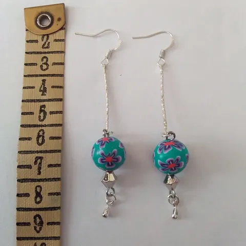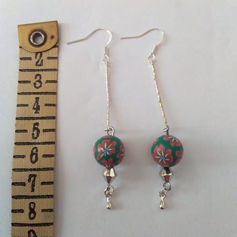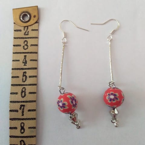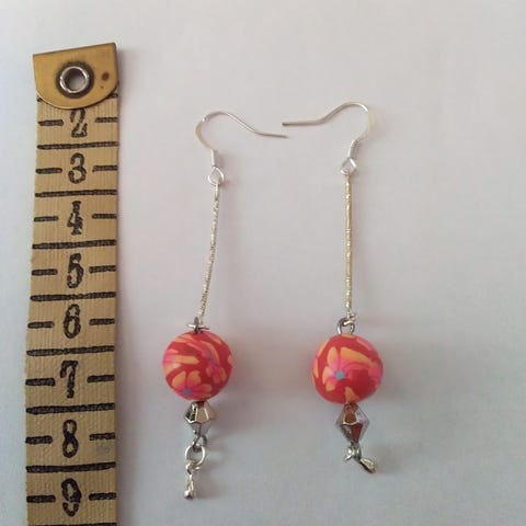 Korvakorut , fimomassa helmi ja hopeoidut helmet.
