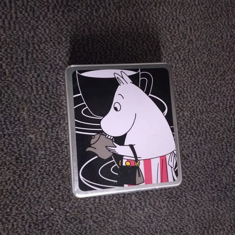 Moomin Muumi peltinen säilytysrasia Talvimaisema
