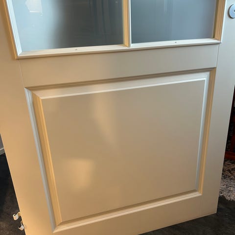 Paketissa oleva pronssin värinen lasiovi karmeineen. Koko 9x19.