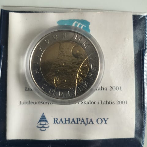 25mk MM 2001 Lahti hiihtokolikko ja 5€ MM 2005 keihäskolikko. Hinta per kolikko 30