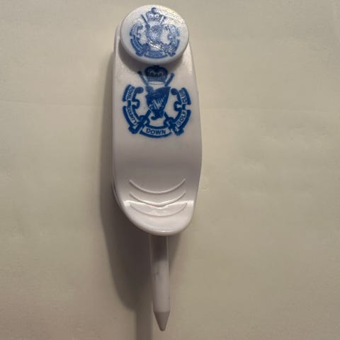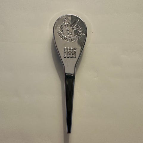 Myynnissä top 100 kenttiin kuuluvan Kingsbarnsin virallinen griinihaarukka ja merkkausnasta.