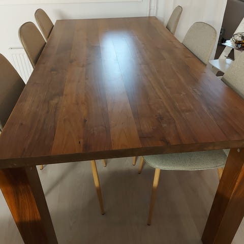 Perus hyvä korkeakiiltoruokapöytä, vähän käytön jälkiä.