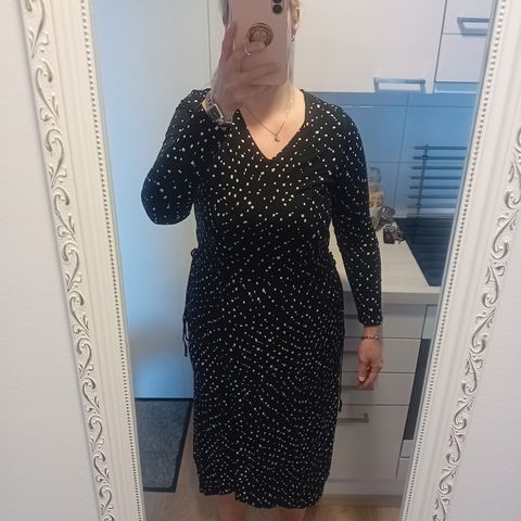 Musta Nanson Dina-mekko. Koko S, mutta todella oversize (kai-kai 55cm, olka-helma 85cm). Puolipitkät hihat ja laskettu olkalinja. Ruututekstuuri, puuvillasekoitetta. Melko helposti nyppyyntyvä materiaali, joten ei enää aivan priima, mutta edelleen siisti.