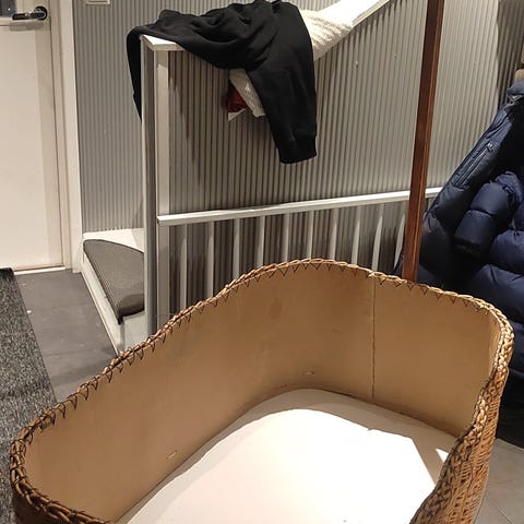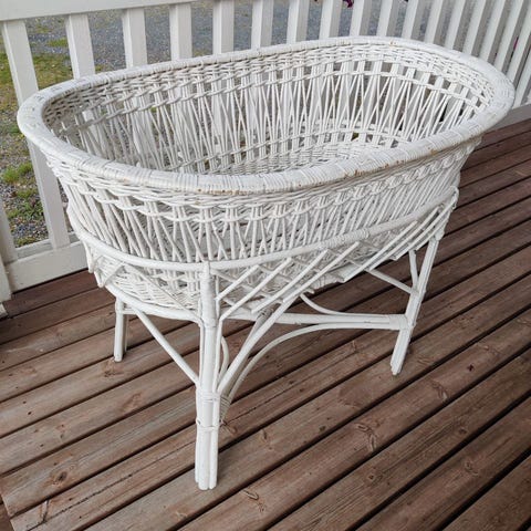 60v vanha. Sitä käytetty vuosina 65, 68 ja 91. Käsintehty Parkanossa, minun syntymääni varten. Alaosassa kosteusvaurio, vuoden 68 jälkeen, äiti piti siinä kukkia, vähän on jotain vuotoa ollut, mutta se ei haittaa käyttöä. Koppaa säilytetty aina kuivassa ja lämpimässä varastossa. Patja ja rimpsu sisältyy hintaan, jos haluaa ne.