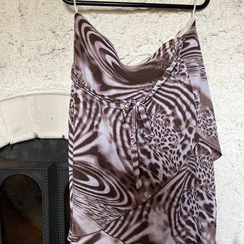 Musta, vuorillinen hame. Napitettu halkio takana. Pituus 77cm.
