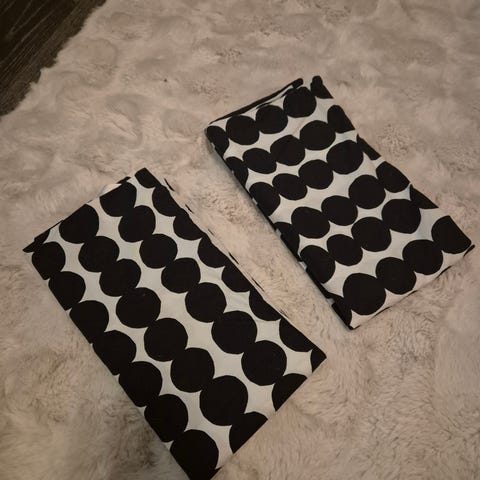 Marimekko räsymatto ja siirtolapuutarha astiat